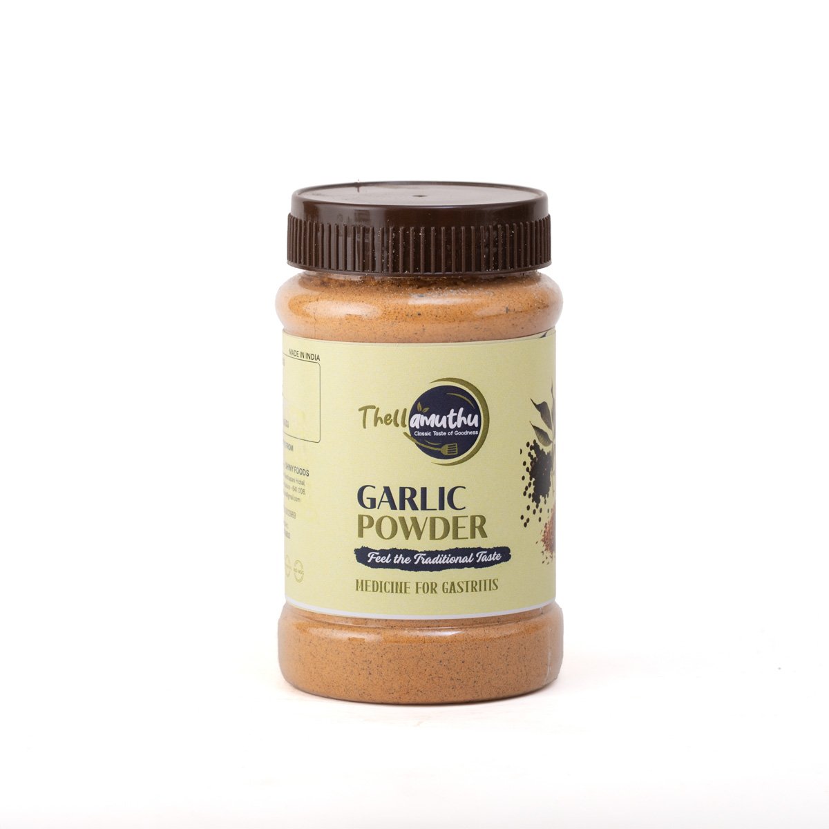 Buy premium Garlic Podi online – traditional South Indian idli podi made with garlic, dals, sesame, and spices. Healthy, homemade, and preservative-free spice powder.