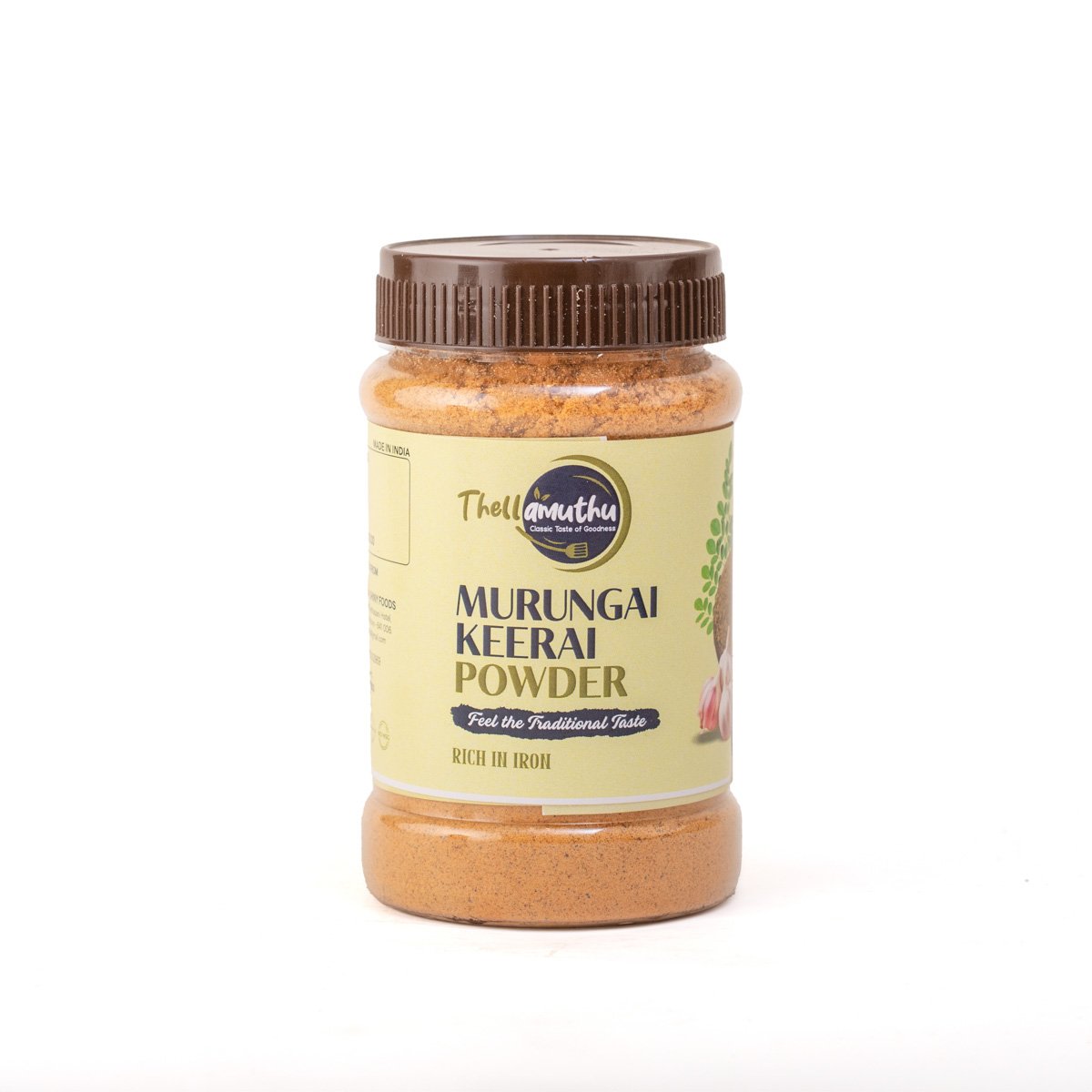 Murungai keerai powder (Moringa leaf powder) is a nutrient-dense, green, earthy-flavored superfood made from dried, powdered Moringa oleifera leaves. Known for high concentrations of iron, calcium, antioxidants, and vitamins, this herbal powder boosts immunity, improves digestion, and acts as a natural energy booster.